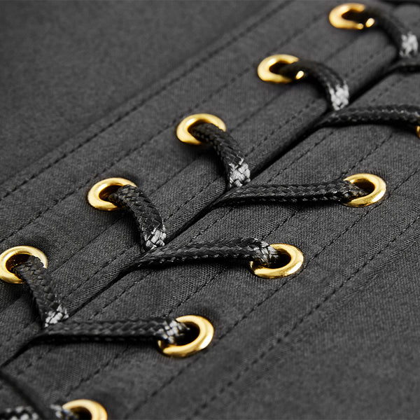 The Black Overbust Corset is made with a flexible design to curve perfectly to your unique shape, the customized pattern highlights your exclusive waist-to-hip ratio and sexiness while the gold-plated buckles make a beautiful contrast with the black fabric. Style it in or out of the bedroom, the zinc-plated alloy underwire prevents deformation keeping your shape structured and secure.