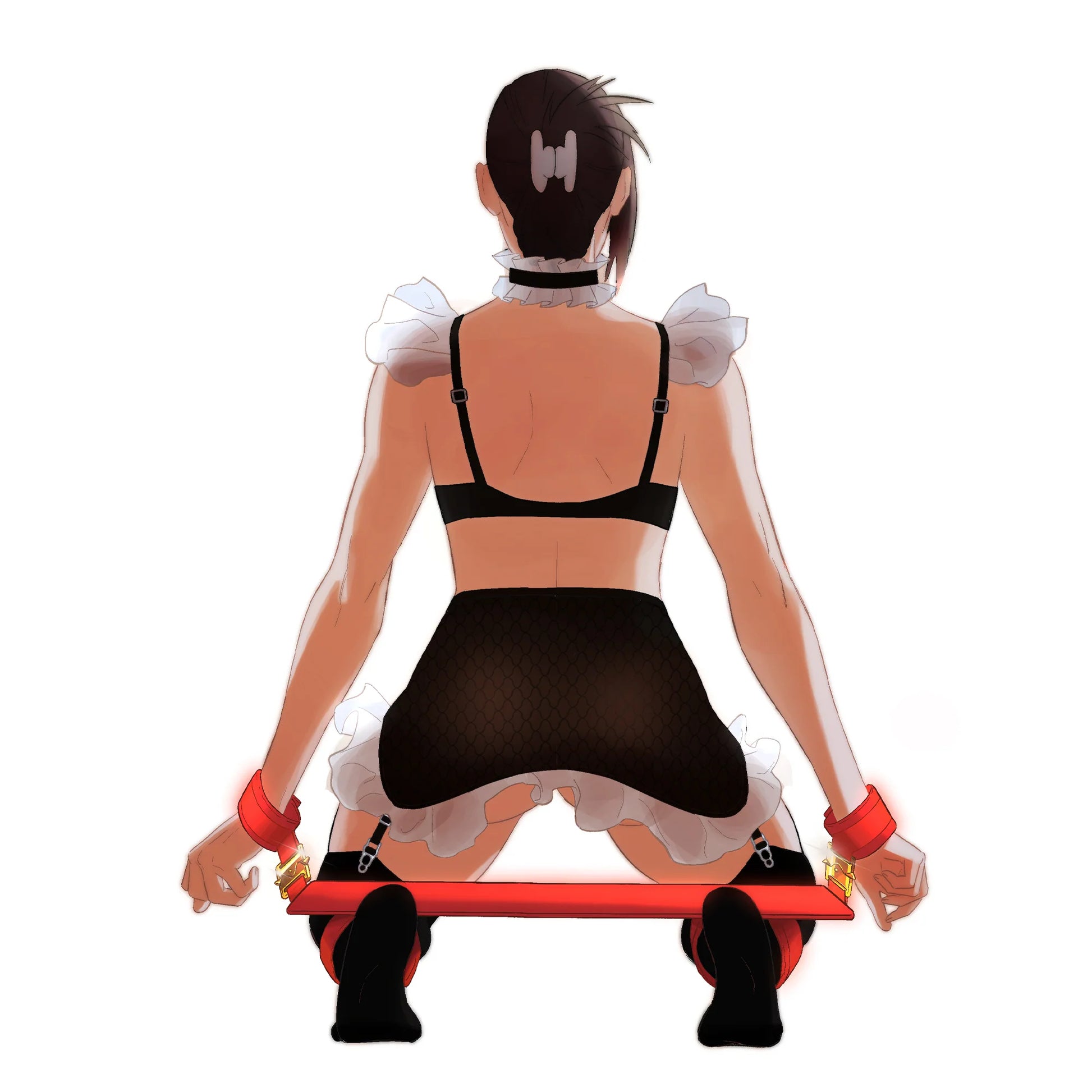 Restrain your submissive’s hands in front, spread their legs with the bar, and watch as their high-arched posture exudes a welcoming invitation.