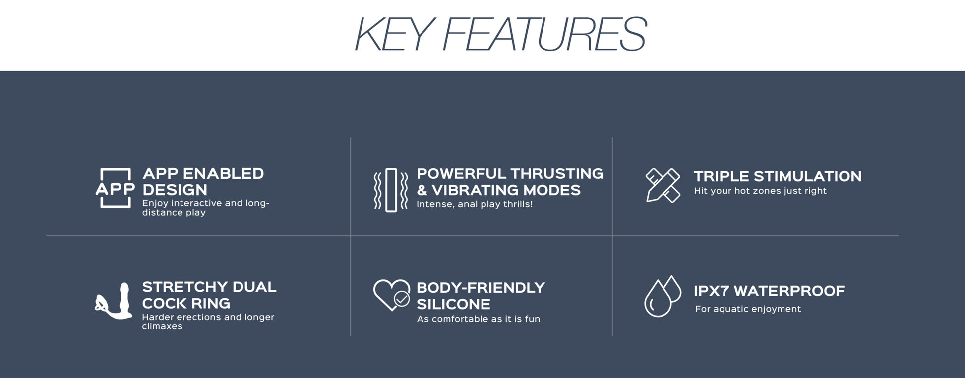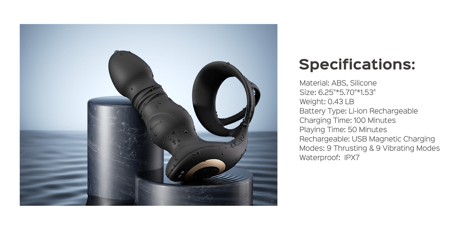 The device offers 9 intense, pre-programmed thrusting patterns paired with deep, rumbly vibrations designed to tease and stimulate the prostate for powerful sensations. Its dual cock ring design features a stretchable, body-safe ring that enhances stamina and prolongs orgasms by comfortably encircling both the penis and testicles. For 360° sensation, the curved base of the toy provides perineum massage with 9 vibration modes, creating wave after wave of blended pleasure that takes you to new heights of ecstasy.