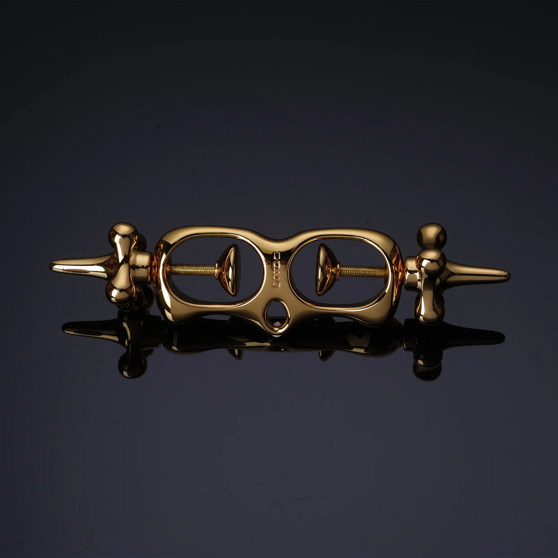 Adjust the level of restraint with the rotary knobs at each end, tailoring the experience to your desires. Despite their delicate appearance, this piece delivers the same secure hold as traditional handcuffs while providing a distinct and portable alternative.