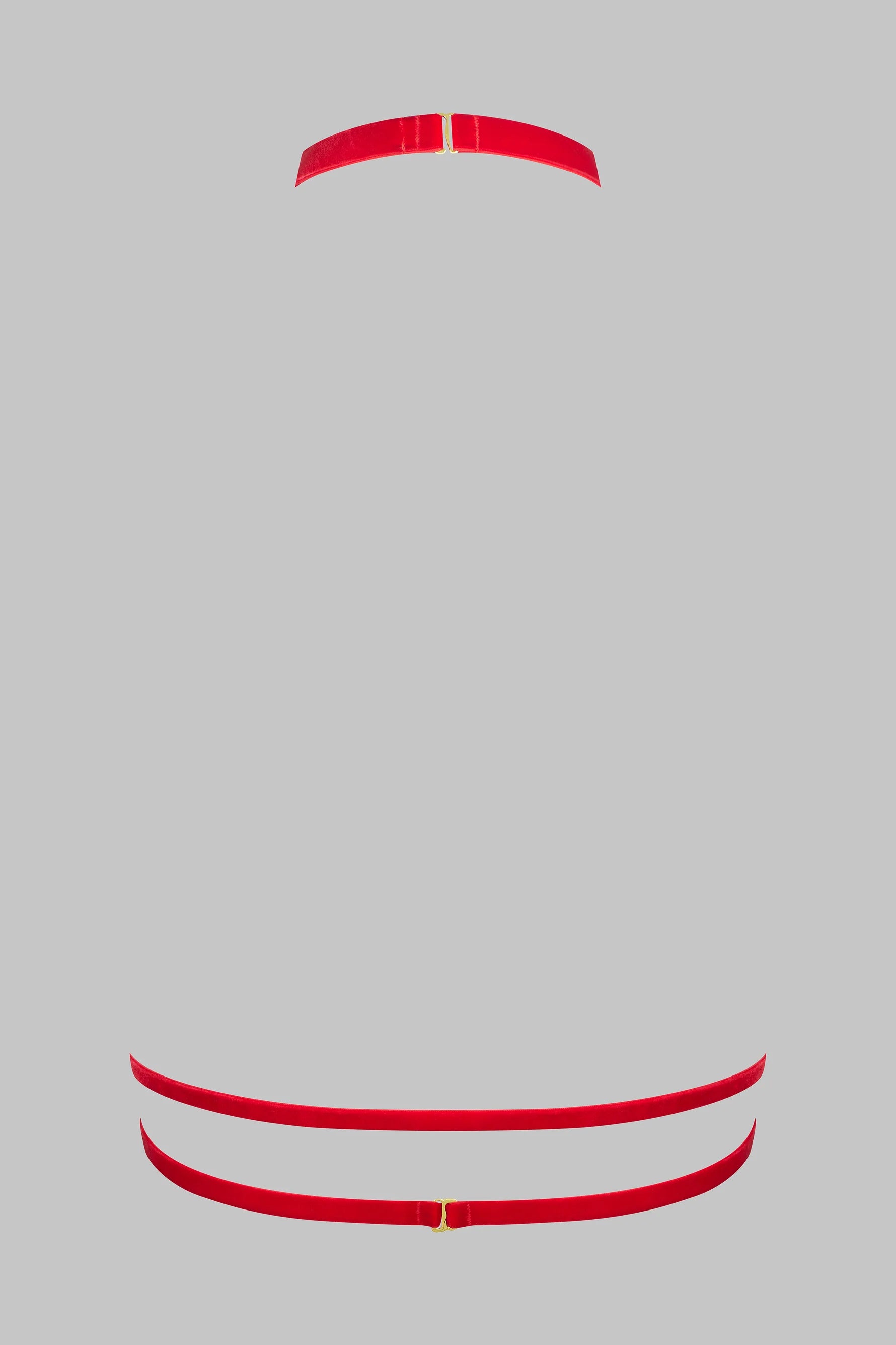 Trace the contours of your desire with the Maison Close Les Fetiches Harness Rouge, a luxurious accessory designed to precisely highlight the lines of the bust. Crafted from plush soft velvet, this piece feels exquisite against the skin, featuring adjustable straps that gently embrace your silhouette for a perfect, custom fit.