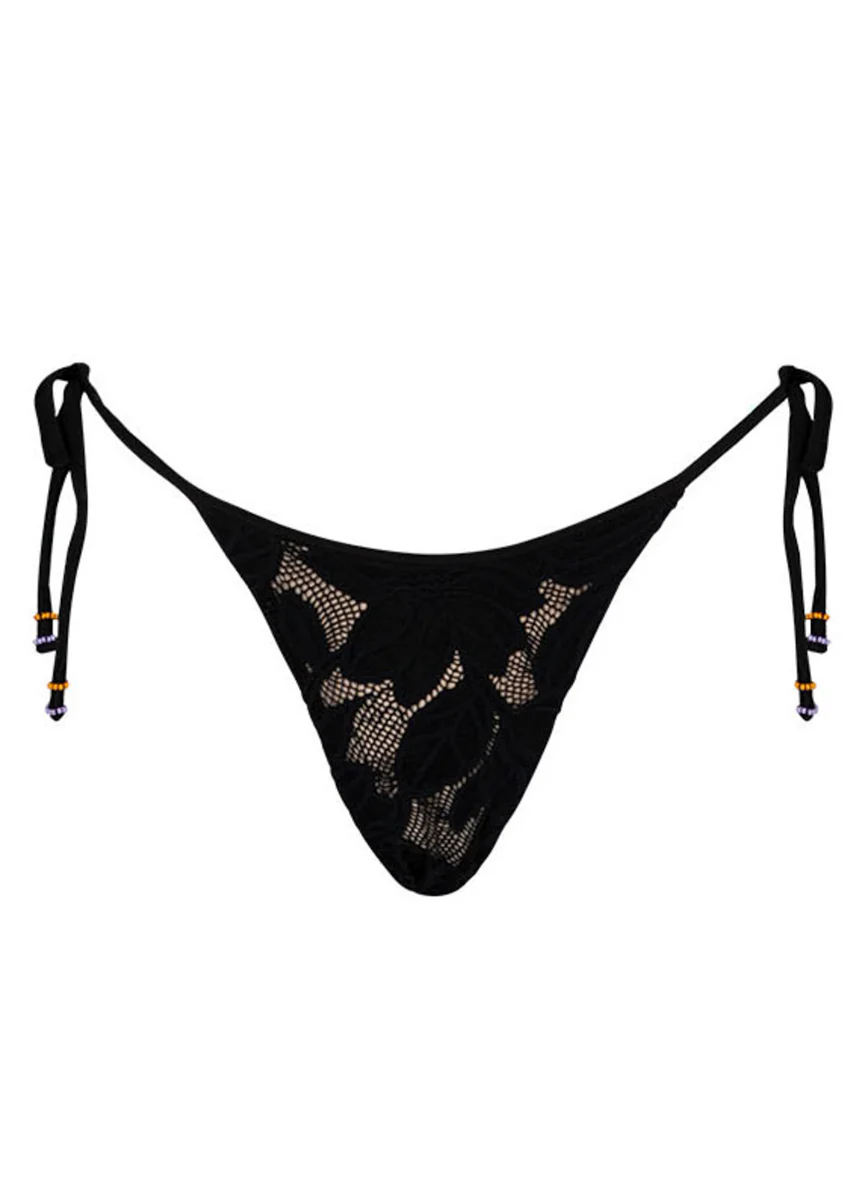 Feel sexy day to night with the Midnight Bouquet Bikini Bottom. Crafted from black mesh floral fabric, this bikini bottom features a skimpy cheeky cut that accentuates your curves, offering a playful and confident look. With tie-sides, you can easily adjust the fit to ensure maximum comfort and support, allowing you to move freely whether you're lounging, swimming, or dancing in the sand.