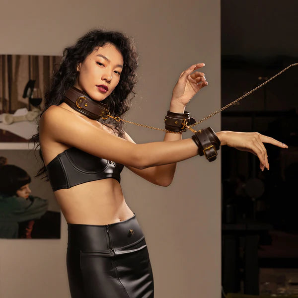 Turn any space into a sophisticated erotic playground with Prestige Bond Advanced Restraint Kit, a high-end portable bondage set designed for discerning players. This one-year in-the-making masterpiece features 27 precision-engineered components and premium leather restraints, enabling multiple combinations for light and rigid bondage, roleplay, and creative play on the go. The design elevated design features padded cow leather cuffs, high-quality stainless steel, gold zinc alloy parts, and a suitcase lined with custom high-density foam, blending hardcore control with luxurious aesthetics. Every detail is crafted to provide a ritualistic, immersive experience while remaining elegant and portable.