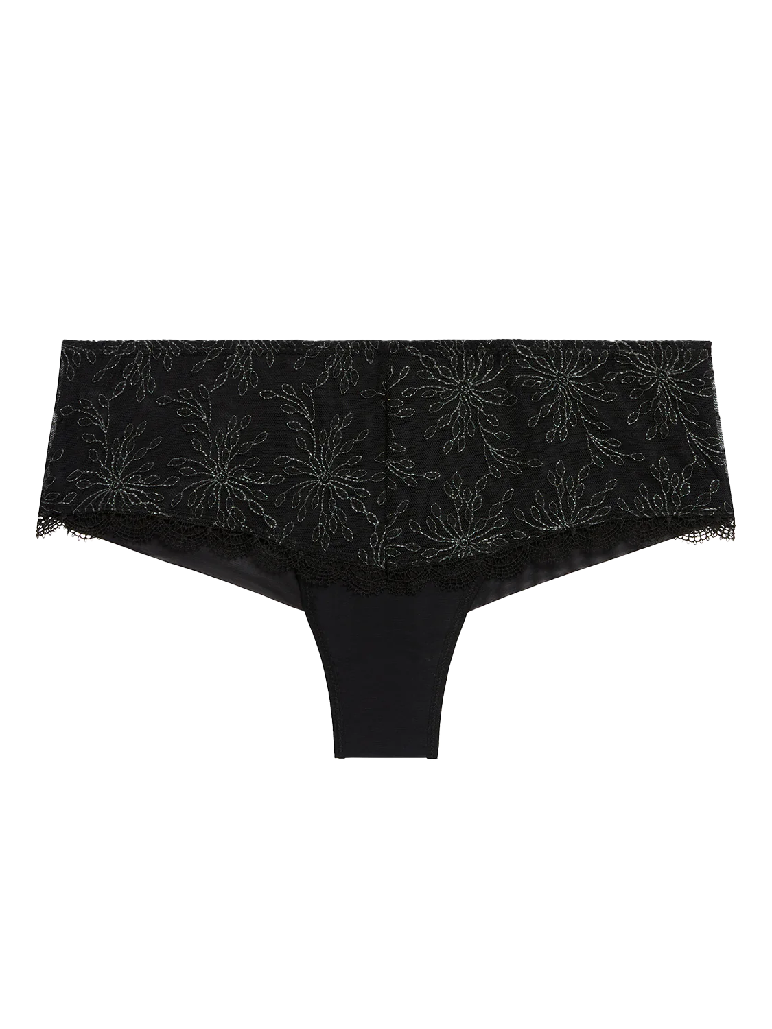 Seduction and comfort in one, the Simone Perele Singuliere Shorty is a classy black cheeky bottom. A sheer, sexy and seamless back with an elegant golden design and refined embroidery at the front. This shorty screams sophistication with a sultry touch.