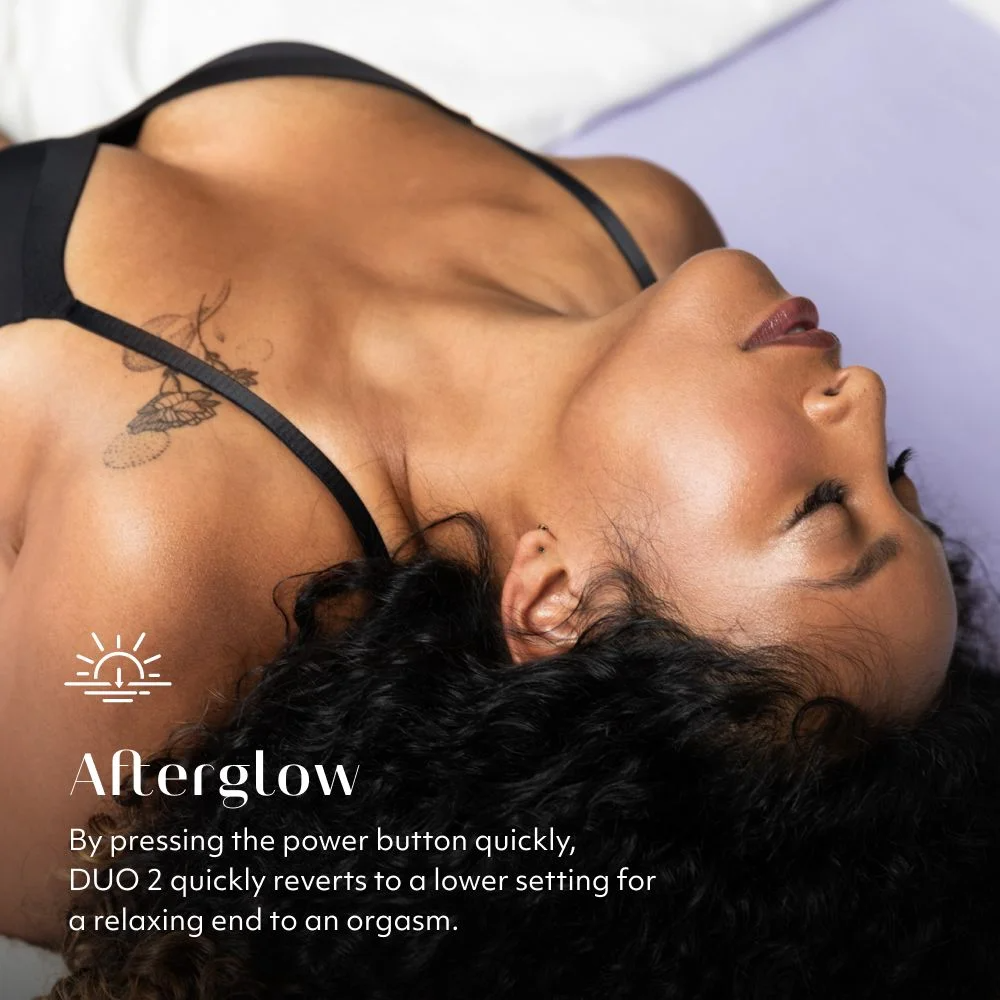 - Dual Stimulation: Designed to thrill both internally and externally, the DUO 2 delivers simultaneous G-spot vibrations and Pleasure Air clitoral stimulation. Control each feature independently to create a customizable mix of sensations that fit your body and desires.